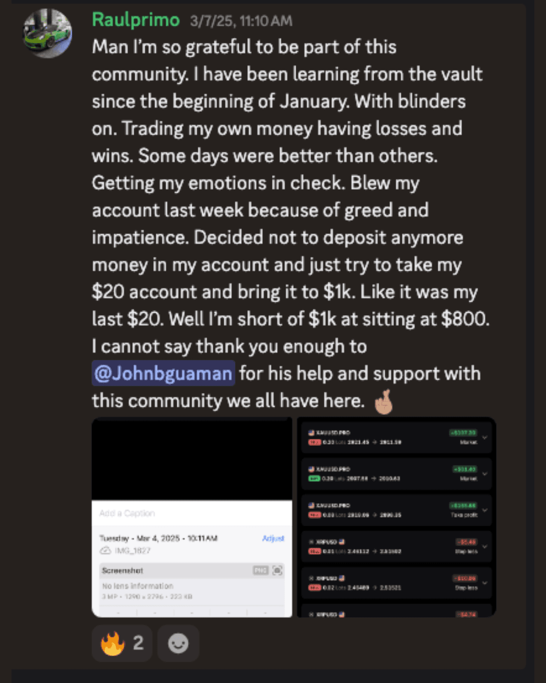 “I was able to make 10k of profit because of John.”
