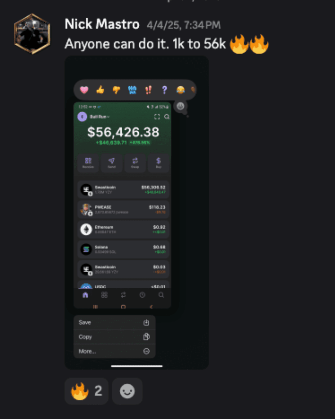 “Just got started and already made about $20,000 with John’s Crypto Call outs.”